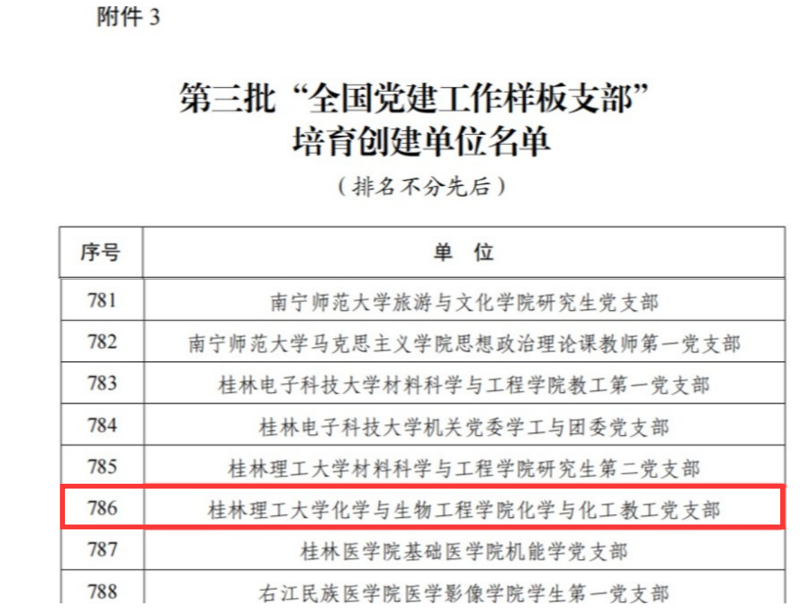 导航痕迹 当前位置: 首页 >> 党建工作 >> 新时代高校党建“双创”工作专栏 >> 正文 【喜报】我院化学与化工教工党支部入选第三批“全国党建工作样板支部”培育创建单位 作者:熊艳 发布日期:2022-03-25 浏览次数: 近日,教育部办公厅公布关于第三批新时代高校党建示范创建和质量创优工作评审结果,此次遴选共产生了11个全国党建工作示范高校、100个全国党建工作标杆院系、1000个全国党建工作样板支部培育创建单位。学院化学与化工教工党支部入选第三批“全国党建工作样板支部”培育创建单位。 近年来,化学与化工教工党支部以习近平新时代中国特色社会主义思想为指导,深入贯彻党的十九大及十九届历次全会精神,贯彻落实新时代党的建设总要求,坚持以政治建设为统领,以提升组织力为重点,以“创建样板支部为契机,推动支部党建工作迈向新台阶,引领各项事业实现高质量发展”为目标,发挥党支部战斗堡垒和党员模范的“两个作用”,通过实施党建工作“五大工程”,促进支部党建与深化综合改革、学科建设、人才培养、教学科研等方面的深度融合,强化“七个有力”,使党支部成为教育党员的学校、团结群众的核心、攻坚克难的堡垒。 支部将坚持软件建设和硬件建设相结合、统筹规划和分步实施相结合、整体提升和品牌塑造相结合,按计划、分步骤开展培育创建工作,推动构建高质量的高校党建工作体系,引领推动高等教育高质量发展,以优异成绩迎接党的二十大胜利召开。 第三批“全国党建工作样板支部”培育创建单位名单部分截图 上一条:【党史学习教育】学院召开“广西党建工作样板支部”创建工作推进会 下一条:【标杆院系】1946伟德国际源自英国举办2021年党支部工作总结及评优促建活动