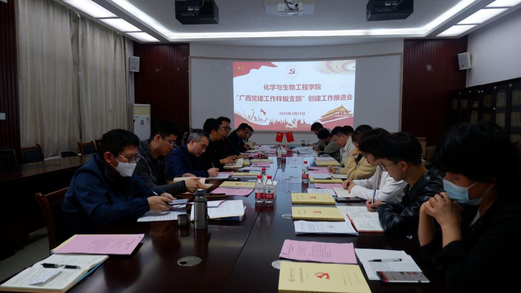 导航痕迹 当前位置: 首页 >> 党建工作 >> 新时代高校党建“双创”工作专栏 >> 正文 【党史学习教育】学院召开“广西党建工作样板支部”创建工作推进会 作者:熊艳 发布日期:2022-04-01 浏览次数: 3月31日,学院在雁山校区萃华楼12217会议室召开“广西党建工作样板支部”创建工作推进会。学院党委书记彭代江主持会议并讲话,学院党委委员、各党支部书记及教工党支部支委参加本次会议。 化学与化工教工党支部书记何方汇报了支部的工作特色和亮点、存在的主要问题,入选“首批新时代广西高校党建工作样板支部培育创建单位”的下一步创建思路等,支部支委及各科室负责人结合党建和业务工作,汇报了工作情况。 彭书记充分肯定了学院“广西党建工作样板支部”培育创建的前期工作,强调了“广西党建工作样板支部”培育创建工作的重要性,并就做好下一步培育创建工作提出四点要求:一要坚持用党的创新理论凝心铸魂,努力在及时跟进、提高质量上下功夫;二要坚持用基层组织工作条例强基固本,努力在强化功能、健全制度上下功夫;三要深化落实“一切工作到支部”,努力在党支部的规范化、标准化上下功夫;四要对标对表抓创建,按照“七个有力”要求推进支部建设,形成完整的创建计划。 会议现场 上一条:【标杆院系】学院召开上半年党员发展工作专题研讨会 下一条:【喜报】我院化学与化工教工党支部入选第三批“全国党建工作样板支部”培育创建单位