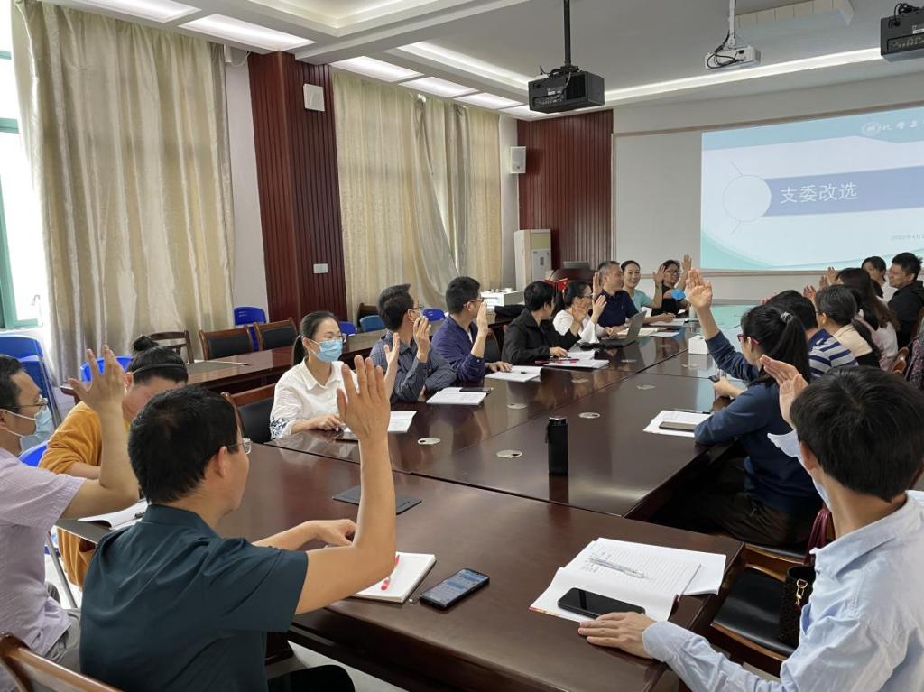 导航痕迹 当前位置: 首页 >> 党建工作 >> 新时代高校党建“双创”工作专栏 >> 正文 【样板支部】化学与化工教工党支部召开党员大会补选支部委员 作者:冯艳艳 发布日期:2022-05-04 浏览次数: 为充分发挥支部的战斗堡垒作用,使党支部不断注入“新鲜血液”,更好地服务群众、凝聚人心,化学与化工教工党支部于4月29日召开党员大会,进行新一届支部宣传委员的补选工作。会议由支部书记何方主持,支部全体在校教工党员参加。 大会严格按照《中国共产党章程》和《中国共产党基层党组织选举工作暂行条例》的规定和要求,选举过程严格遵守公平、公开、公正的原则,以投票方式选举产生了新一届支部宣传委员。 党员大会后,支部委员会召开了支委会议。会议强调支委将以高度负责的态度和锐意进取的精神,进一步规范“三会一课”、主题党日活动等,提高党建工作水平,全力打造“最强党支部”,为支部教工教学科研工作的开展提供强大的精神动力和思想保障。 会议现场 上一条:【样板支部】化学与化工教工党支部和学生党支部联合开展主题党日活动 下一条:【样板支部】化学与化工教工党支部举行观影《永不消逝的电波》主题党日活动