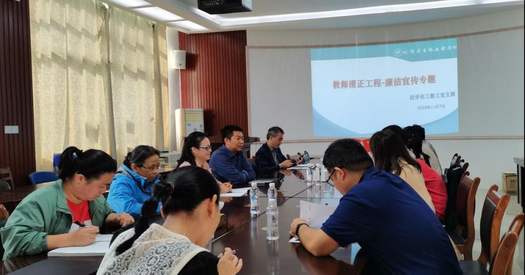 导航痕迹 当前位置: 首页 >> 党建工作 >> 新时代高校党建“双创”工作专栏 >> 正文 【样板支部】化学与化工教工党支部开展“教师清正工程”廉洁宣传主题党日活动 作者:冯艳艳 发布日期:2022-11-30 浏览次数: 全国高校思想政治工作网:https://yurenhao.sizhengwang.cn/a/gllgdxhxyswgcxyhxyhgjgdzb/221130/1191273.shtml 为引导教师规范言行,加强教师思政建设,营造优良党风、清正教风,2022年11月7日,化学与化工教工党支部在12217举行了“教师清正工程”廉洁宣传主题党日活动。 教师清正工程是推动教育提质振兴的坚实保障。“学高为师,身正为范”。教师是人类灵魂的工程师,廉洁从教是师德的根本。孔子曰:“其身正,不令而行;其身不正,虽令不从”。作为教师,一言一行对学生都起着潜移默化的作用,所以要在日常教学中发挥模范、表率作用。教师的素质直接影响着学生的学风和学校的校风,教师的形象直接关系着学生素质的培养。作为教师党员,更应坚持全心全意为人民服务的宗旨,坚持廉洁从教、以德治教,做社会的楷模,做学生的表率,保持共产党员的高风亮节。只有这样,才能全面落实立德树人根本任务,为推动学院化学工程与工艺专业的高质量发展提供坚强的政治和纪律保证。 通过此次廉洁宣传主题活动,全体教工党员表示,时刻提醒自己以廉洁奉献的红烛精神教书育人,努力提高自己的教学和科研水平,关心学生的可持续发展,用博爱为学生撑起广阔的蓝天。 活动现场 上一条:【样板支部】化学与化工教工党支部召开学习“党的二十大精神”主题会议 下一条:【标杆院系】学院院长匡小军为学生党员上主题党课