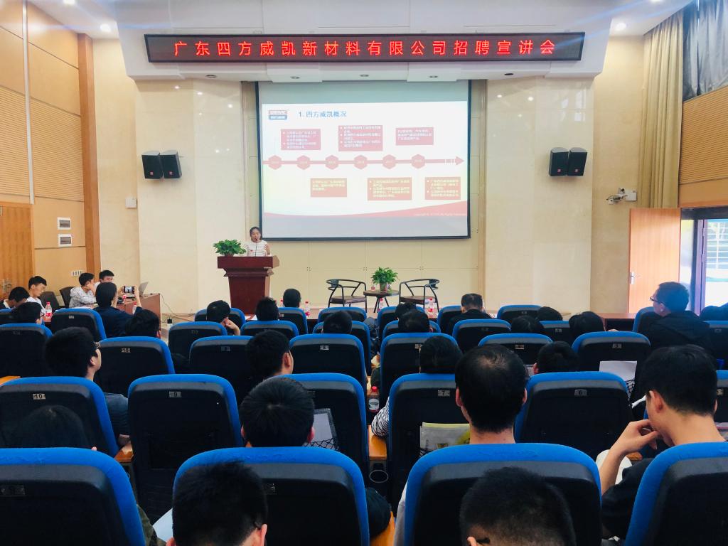 导航痕迹 当前位置: 首页 >> 招生就业 >> 招聘信息 >> 正文 广东四方威凯新材料有限公司来我院开展专场招聘宣讲会 作者:梁精华 发布日期:2019-11-02 浏览次数: 11月1日,广东四方威凯新材料有限公司来到我院开展专场宣讲会。宣讲会在我校雁山校区12217多功能厅召开,我院2016级、2017级化学工程与工艺、应用化学、分析化学等专业部分本科生参加宣讲会。 宣讲会现场,企业代表郭书记首先从公司概况、发展理念、人员培训、薪酬福利、招聘流程等方面做了详细介绍,然后针对同学们普遍关心的问题进行了一一解答。郭书记表示,希望同学们在求真务实中寻找到人生成长的方向,在企业发展中做到自我升华,四方威凯欢迎每一位有梦想的学生。宣讲会现场有条不紊,反响热烈。 据悉,四方威凯创建于1998年,是一家专业从事汽车及其配件涂料、摩托车及其发动机涂料、电动车及光固化涂料、轨道交通及工程机械装备涂料、钢结构及铝幕墙涂料、厨具功能涂料等高档工业涂料研发、生产、销售于一体的国家级高新技术企业。 广东四方威凯新材料有限公司招聘宣讲会现场 上一条:诺德投资股份有限公司来我院开展专场宣讲会 下一条:江门市优巨新材料有限公司来我院开展专场招聘宣讲会