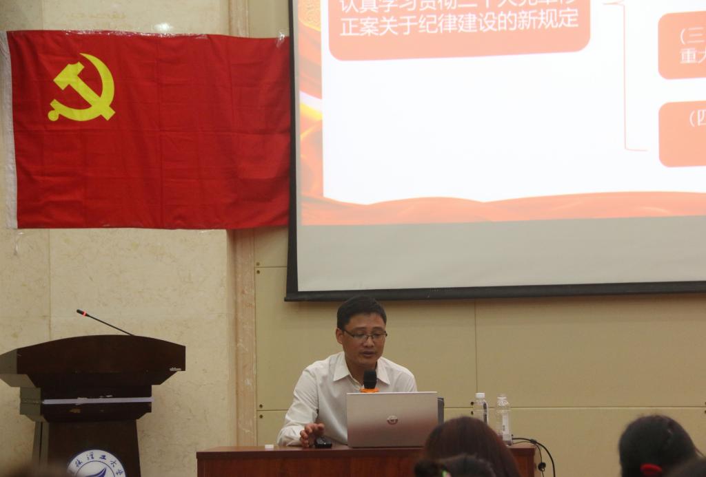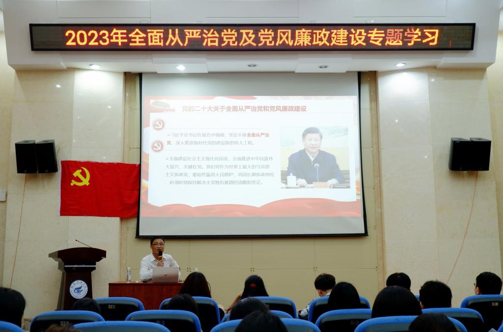 导航痕迹 当前位置: 首页 >> 党建工作 >> 学习贯彻习近平新时代中国特色社会主义思想主题教育 >> 正文 【标杆院系】学院开展全面从严治党及党风廉政建设专题党课 作者:熊艳 周珍红 发布日期:2023-05-25 浏览次数: 为了贯彻党的二十大全面从严治党部署,坚定不移推进党风廉政建设,加强对毕业生党员的党性和廉政教育,学院于5月24日下午在萃华楼报告厅组织开展《全面从严治党及党风廉政建设》专题党课。本次专题党课学院党委副书记李少华主讲,学院全体毕业生党员参加。 党课过程中,李老师以全面从严治党及党风廉政建设为题,从党的二十大关于全面从严治党和党风廉政建设,遵守党章、纪律红线不可逾越,筑牢廉政思想根基、做到忠诚干净担当,永葆廉洁心、走好职场路四个方面,结合生活实际和典型案例,教育引导全体毕业生党员要时刻牢记入党誓词,强化底线思维和红线意识,把廉洁作为一种生活方式,作为一种精神境界去追求,开启人生新征程。 铸廉洁之心,行廉洁之事;树清廉之风,做廉洁之人。毕业生党员纷纷表示在本次党课中受益匪浅,今后将筑牢理想信念,以案为鉴,增强廉洁自律意识,走好往后人生的每一步。 党课现场(一) 党课现场(二) 上一条:1946伟德国际源自英国学习贯彻习近平新时代中国特色社会主义思想主题教育读书班第八次专题研讨 下一条:【标杆院系】【学习强国】1946伟德国际源自英国以“五个一”扎实推进主题教育实践教学